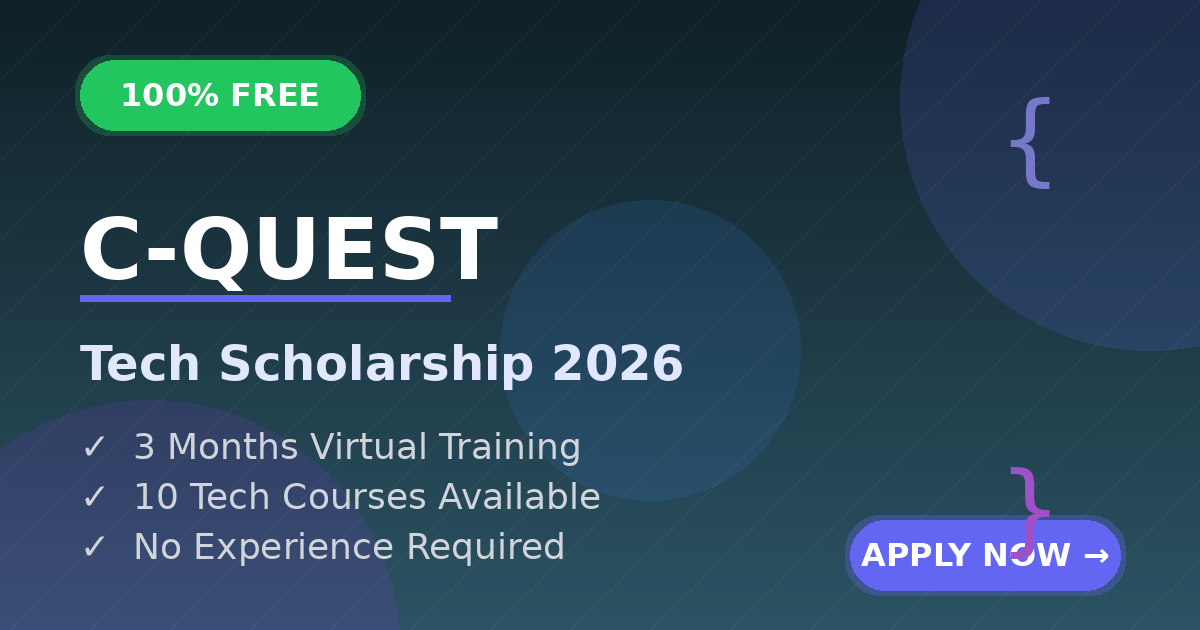 The C-Quest Tech Scholarship is a comprehensive, 100% free virtual training program designed for Nigerians who want to acquire practical tech skills without any prior experience. Whether you're a complete beginner or looking to level up your existing skills, this scholarship provides everything you need to start or advance your tech career.